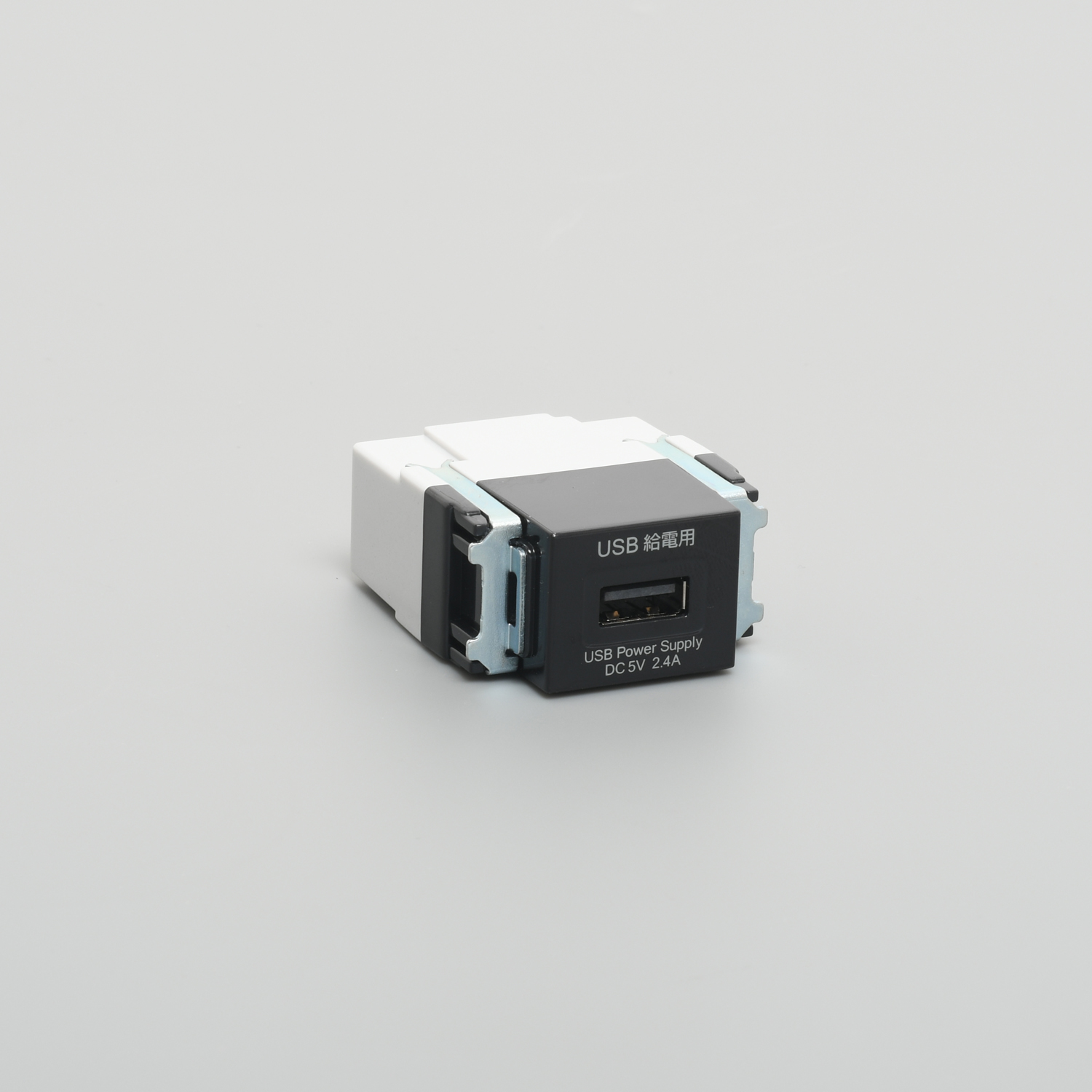 A receptacle for a USB connector that can be installed in a box such as on a wall. It is ideal as a power source for devices (iPhone, iPad, smartphone, tablet device, etc.) that use the USB port for charging.